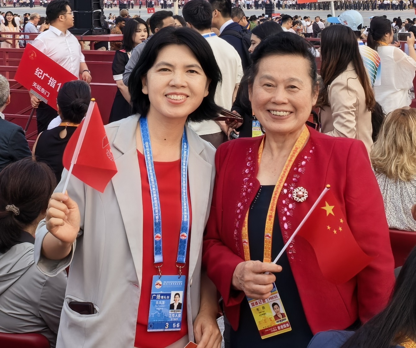 韦燕副局长同国台办新闻发言人朱凤莲就推动两岸关系和平发展友好交流后,合影留念。
